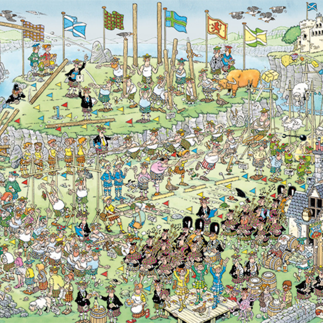 A Jan van Haasteren puzzle is so much more than just a puzzle, it’s an adventure series with familiar characters playing the lead roles in a never-ending decor full of absurd details. Explore Highland Games from Jumbo, the 1500 piece jigsaw puzzle that celebrates Scottish and Celtic culture...with a twist!
